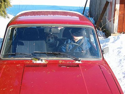 | Tommi ajaa ja minä istun tällä kertaa takapenkillä. | ![]() | |