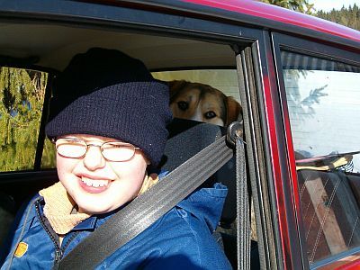 | Sukulaispoikamme Tommi on tullut kylään meille. Menemme yhdessä Tommin kanssa autoajelulle. | |