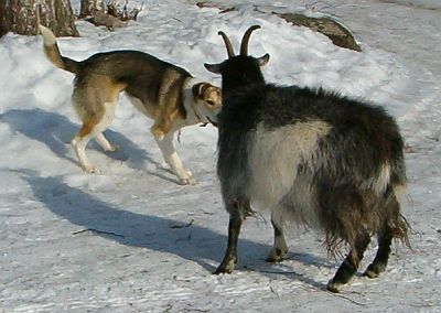 Meidän perheeseen kuuluu myös kaksi vuohta Siru ja Lootus, jotka on mun kamuja. Hei tuut sä Siru leikkimään mun kanssa, vuh.