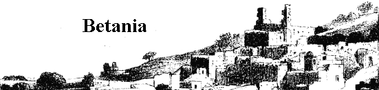 Betania. Betanian kylä sijaitsee Öljyvuoren itäisillä rinteillä. Betania on noin 3 kilometrin päässä Jerusalemista.