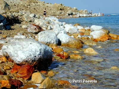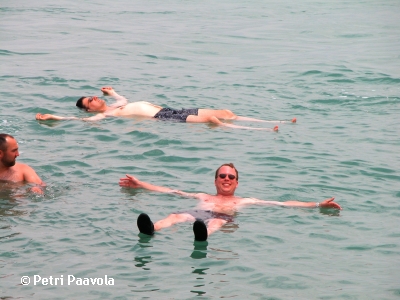 Kuolleessa meressä pystyy kellumaan sen korkean suolapitoisuuden takia. |
