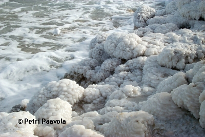 Kuvassa kivet ovat saaneet suolapeitteen. |