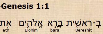 Bereshit -alussa sanan hepreankielen kirjainten merkitykset ovat. Beit keho teltta talo tai huone; Resh pää; Alef voima johtaja ensimmäinen tai Jumala; Shin tuhota kivi ja huippu; Jod käsi ja teko; Tav merkki liitto risti ja sinetöidä. Bara -luoda sanan hepreankielen kirjainten merkitykset ovat. Beit keho teltta talo tai huone; Resh pää; Alef voima johtaja ensimmäinen tai Jumala. Elohim -Jumala sanan hepreankielen kirjainten merkitykset ovat. Alef voima johtaja ensimmäinen tai Jumala; Lamed sauva; He aitaus ja paljastaa; Jod käsi ja teko; Mem vesi ja mahtava. Eth -itse sekä viittaa verbin tai preposition kohdetta. Eth sanan hepreankielen kirjainten merkitykset ovat. Alef voima johtaja ensimmäinen tai Jumala; Tav merkki liitto risti ja sinetöidä. HaShamajim - taivas (mon. taivaat) sanan hepreankielen kirjainten merkitykset ovat. He aitaus ja paljastaa; Shin tuhota kivi ja huippu; Mem vesi ja mahtava; Jod käsi ja teko; Mem vesi ja mahtava. Veth -itse sekä viittaa verbin tai preposition kohdetta. Veth sanan hepreankielen kirjainten merkitykset ovat. Vav naula liittää ja turvallisuus; Alef voima johtaja ensimmäinen tai Jumala; Tav merkki liitto risti ja sinetöidä. HaArets -sanan hepreankielen kirjainten merkitykset ovat. He aitaus ja paljastaa; Alef voima johtaja ensimmäinen tai Jumala; Resh pää; Tsadi koukku halu toivomus ja oikeamielinen. Kirjainten merkitysten perusteella saamme seuraavanlaisen sanoman. Jumala tapetaan ja tämän teon kautta risti on merkki liitosta (Uusi Liitto). Jumala on huoneensa (kansan) voima ja johtaja. Jumalan paimensauvan voiman kautta paljastuu mahtavia tekoja. Jumala sinetöi liiton ristin kautta. Luotu materia (kivi) paljastavat mahtavan teon veden kautta (luomisteon todistus). Jumala naulittiin ristille liiton merkiksi. Jumala paljastaa oikeamieliselle tahtonsa. Edellä oleva sanoma oli tulkinnallinen, jonka voi saada hepreankielen kirjainten merkitysten perusteella. Sanoma oli Raamatun sanan totuuden mukainen sillä Herra Jeesus on Jumala, mutta ei Isä. Herra Jeesus tapettiin Golgatan ristillä, jonka seurauksena astui voimaan Uusi Liitto. Jumalan voima kautta tapahtuu mahtavia tekoja. Jumala todellakin sinetöi Uuden Liiton Herran Jeesuksen kautta. Raamattu opettaa että kaikki luodut asiat ovat rakennettu veden kautta. Herra Jeesus naulittiin ristille Uuden Liiton merkiksi, Jumala paljastaa ja opettaa oikeamieliselle tahtonsa ja Jumalan sanan totuuden. En kehota ketään syventymään pääsääntöisesti hepreankielen kirjainten merkityksiin, vaan yksinomaan Jumalan sanan kirjoitettuun ilmoitukseen. Hepreankielen kirjainten kirjalliset merkitykset saakoon vähemmän aikaa Herran Jeesuksen opetuslapsen elämässä kuin Jumalan sanan kirjaimellisen sanan ilmoituksen tutkiminen, koska pelastava sekä uskoa kasvattava usko syntyy Jumalan sanan kirjaimellisen ilmoituksen kautta: