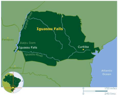 nähtävyyksistä, joka sijaitsee Brasilian, Argentiinan ja