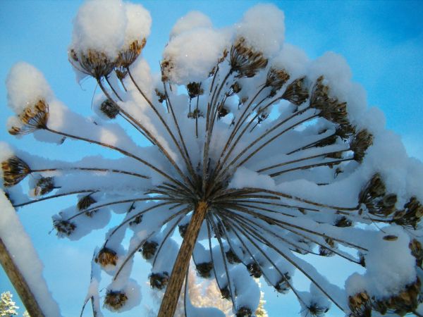 ![]() The snow covers Giant Hogweed Lumi peittää jättiputkia. ![]() Lumi peittää koivunoksia. The snow covers branches of the birch. ![]() Kukinto on muuttunut lumipeitteeksi. The blossom has changed to the snow veil. |